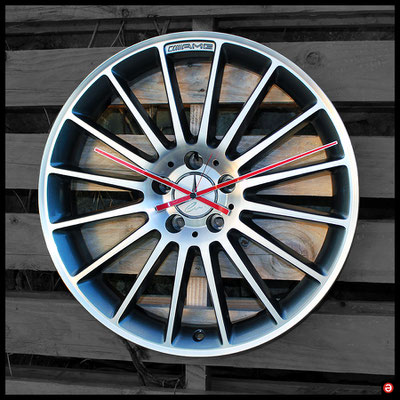 Reloj de pared fabricado en una llanta de 20.5" original de Mercedes-Benz C 63 AMG. Único y exclusivo, y sin duda una pieza idónea para aquellos amantes del motor. Pieza de gran coste, tanto por el valor original de la llanta cómo por el proceso de fabricación y adaptación de esta a un precioso reloj de pared.